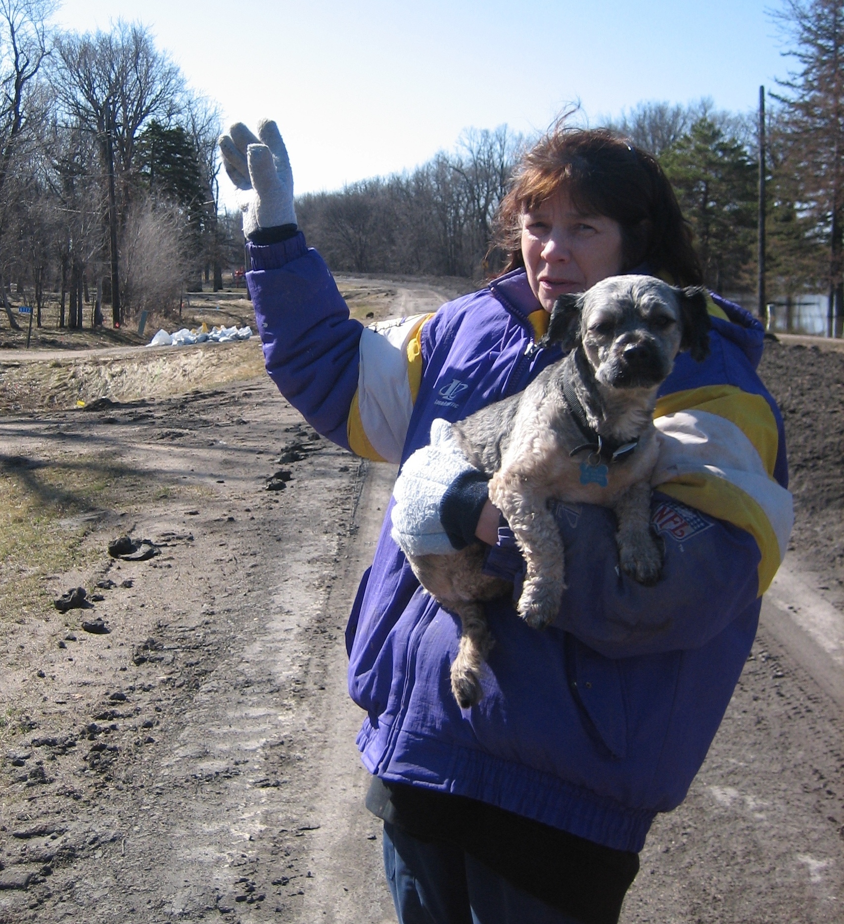 For example, clay dikes and sump pumps are protecting many homes, including one in Oakport Township north of Moorhead, Minnesota, where Joan Egge has lived for eighteen years.
