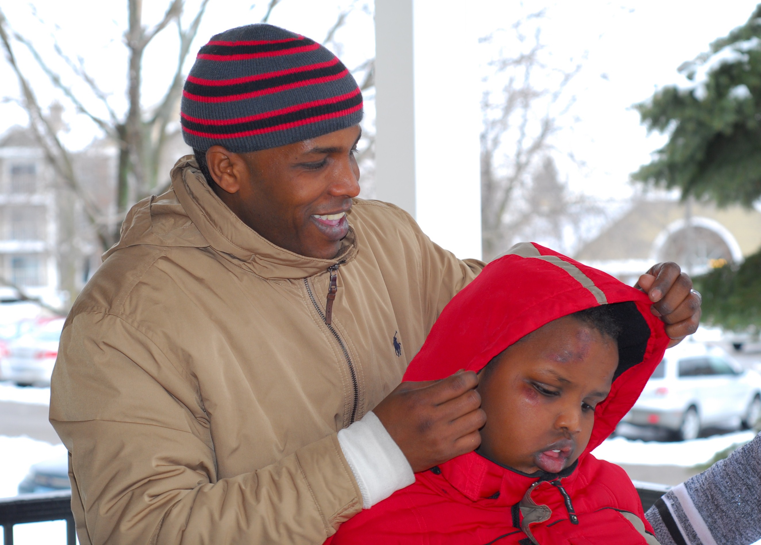 Abdiaziz Warsame, 35, fled Mogadishu, Somalia, with his son Shamusdin, 10, who has brain damage and paralysis. Red Cross family tracing services helped find Warsame’s wife alive in Somalia. Photo credit: Lynette Nyman/American Red Cross