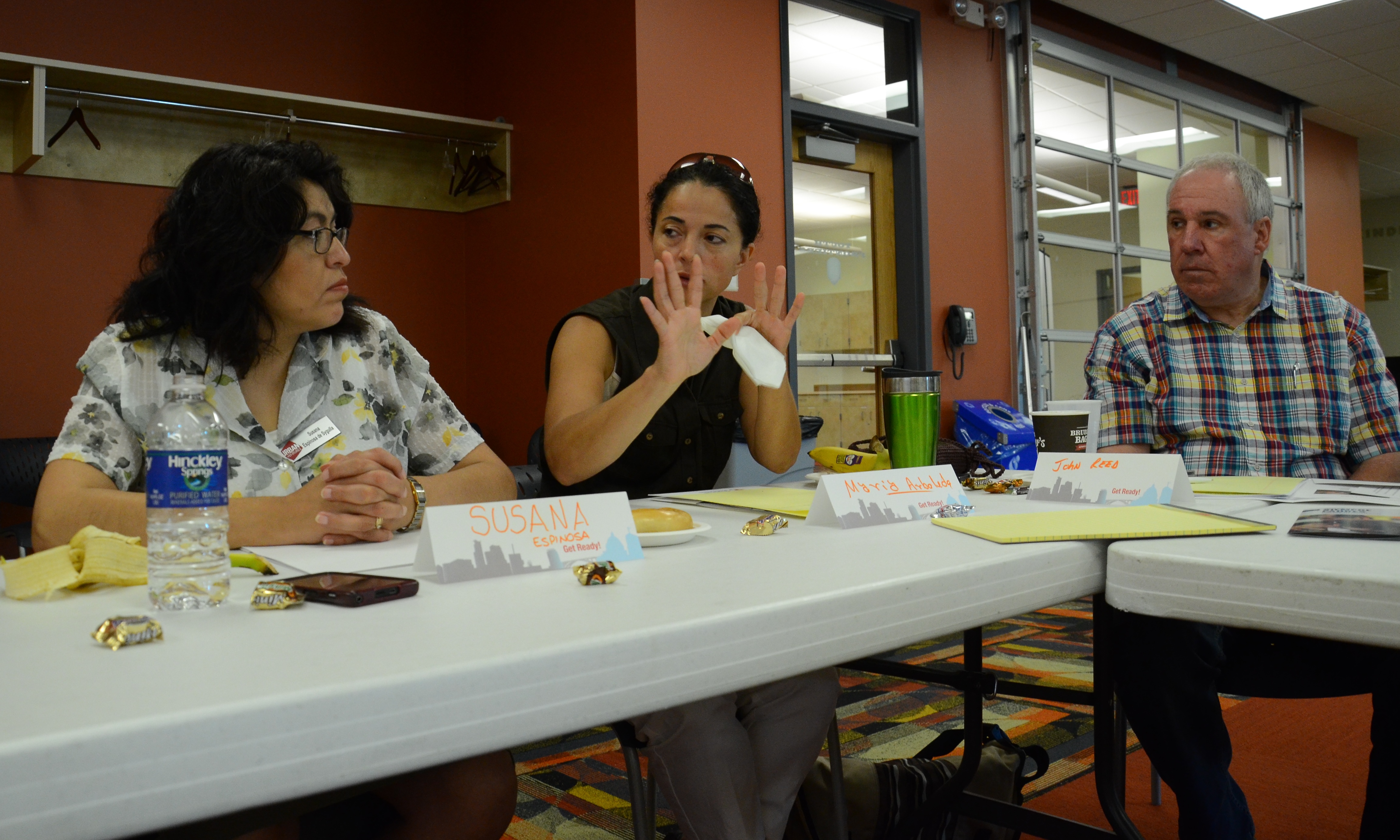 Maria Arboleda (above center), a program coordinator in higher education, says that many Latino families have resources to be prepared for disasters, but that “if we want to get this education out to communities, then we need more Spanish speakers and more people from the communities.”