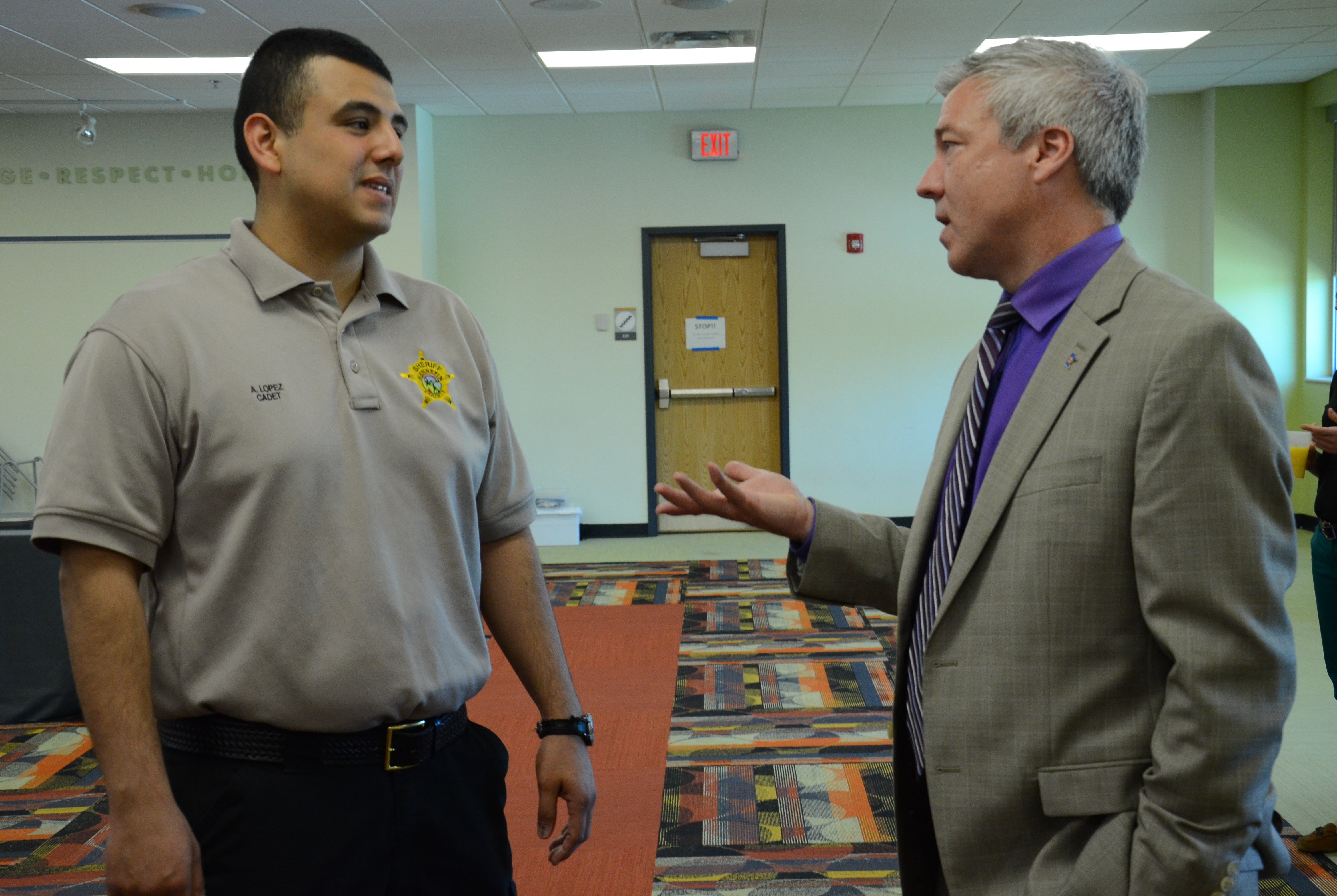 “Every mom is a first responder,” says Arturo Lopez (above left), a cadet in law enforcement training. Lopez says that building trust, reaching children and training women are keys to sharing preparedness messages with Latino families.