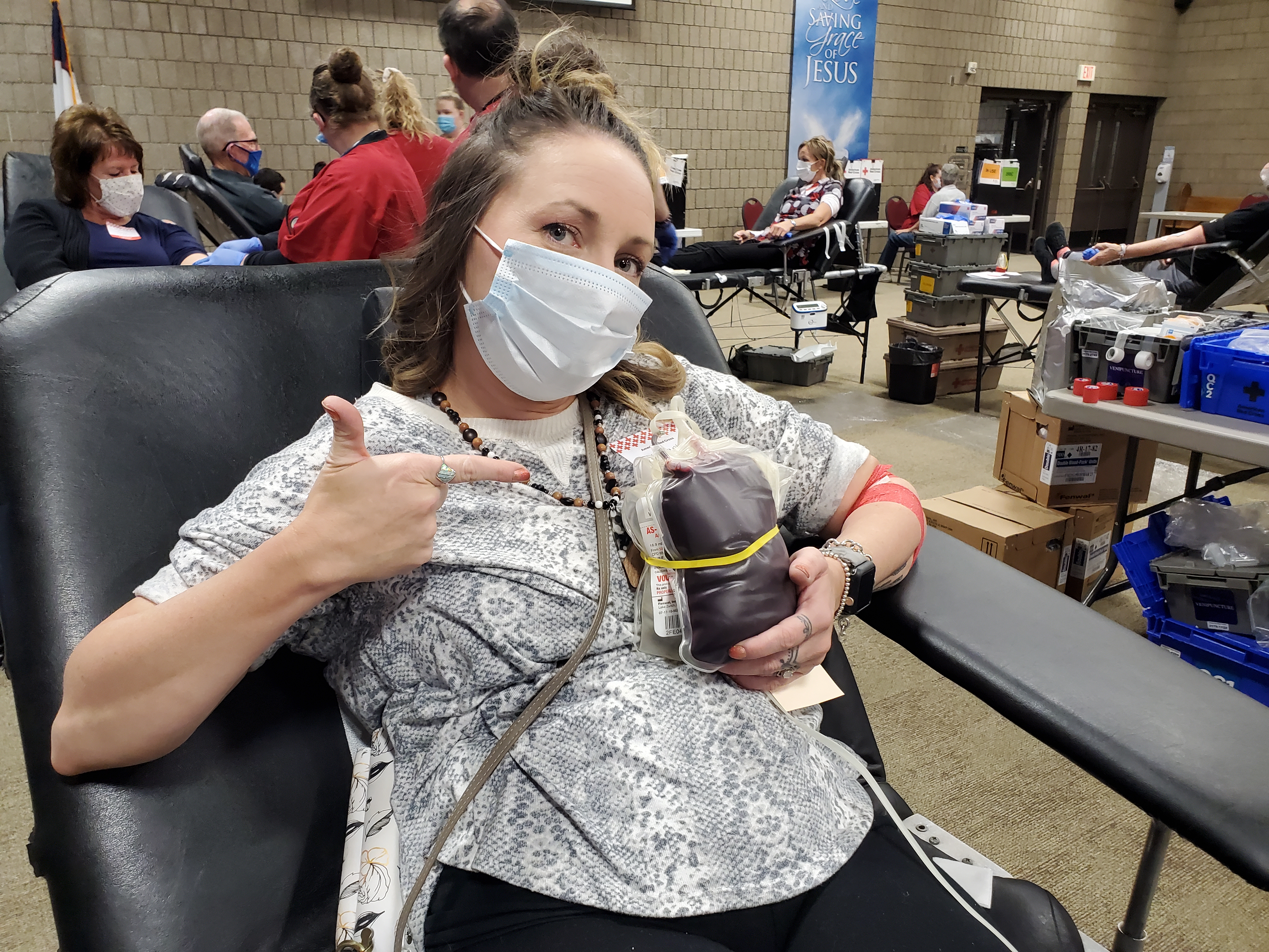 Jenapher left the blood drive pumping her fist in the air with excitement and thanking everyone in the room for giving the gift of life.