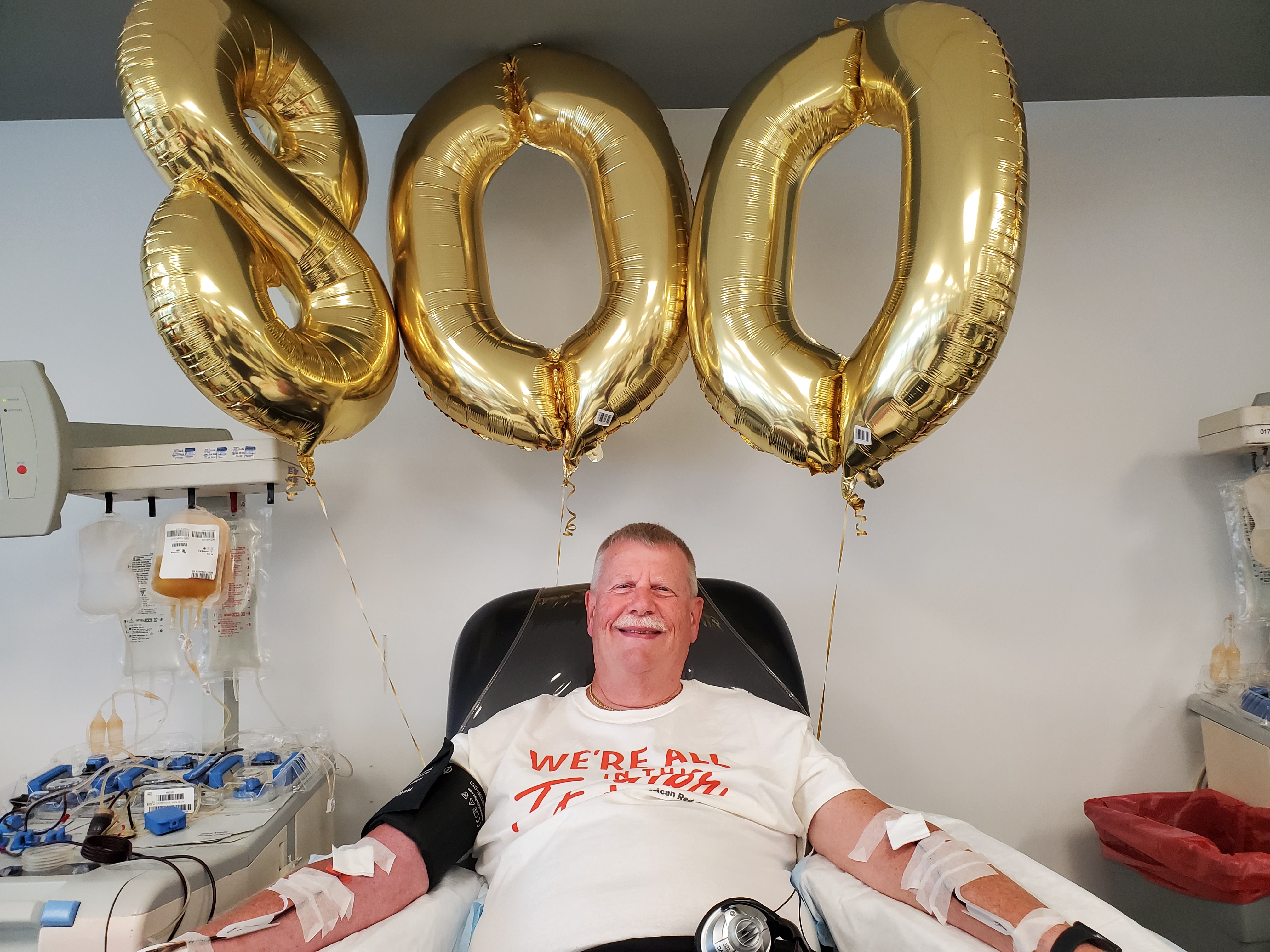 Dedicated platelet donor hits 800-units/100-gallon milestone and encourages others to give during Red Cross national blood and platelet shortage