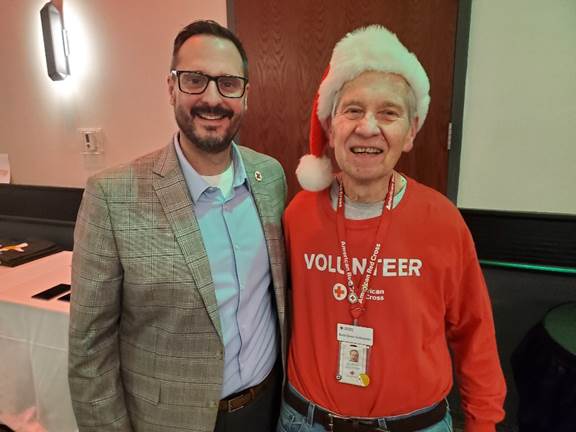 Gordy volunteers each year at the annual Holiday 12 Hours of Giving blood drive. Pictured with Brice Johnson, CEO of the Red Cross Minnesota and Dakotas Region, at the 2023 drive. Photo: Sue Thesenga/American Red Cross.