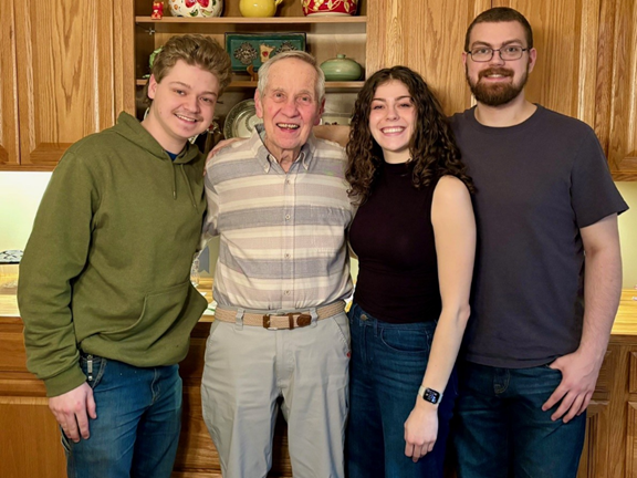 For his 81st birthday, Minnesota and Dakotas Region biomed volunteer and blood and platelet donor Gordy Kircher was deeply touched when his grandchildren — Will, Johanna, and Ethan — donated blood for the first time in his honor, carrying forward his lifesaving legacy.
