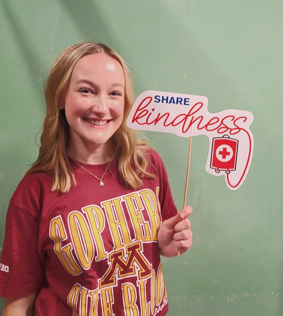 Now a senior theater major at the University of Minnesota, Madelyn carries that experience with quiet strength and a clear sense of purpose. She’s using her story to encourage others through the Abbott and the Big Ten’s “We Give Blood” competition, a friendly way for universities to inspire more students to donate. At the University of Minnesota Red Cross Blood Drive, Madelyn had fun with “Buddy the Blood Drop” and inspired classmates to donate more than 100 units of lifesaving blood. And this December, right in the middle of finals week, she’s hosting her own blood drive on campus. It’s already almost full.