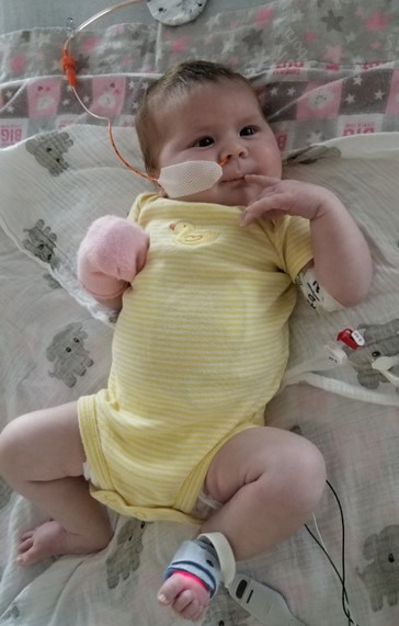 Doctors diagnosed Nolan with a serious congenital heart defect: a coarctation of the aorta, a narrowing of one of the heart’s main arteries. Just 10 hours after birth, he was rushed by ambulance to Children’s Hospital in Minneapolis. At only four days old, Nolan underwent his first major surgery. Surgeons accessed his heart through his back and used a Gore-Tex (synthetic) patch to widen the narrowed artery. During that operation, Nolan received his first blood transfusion, one of many he would need. That donated blood played a critical role in saving his life.