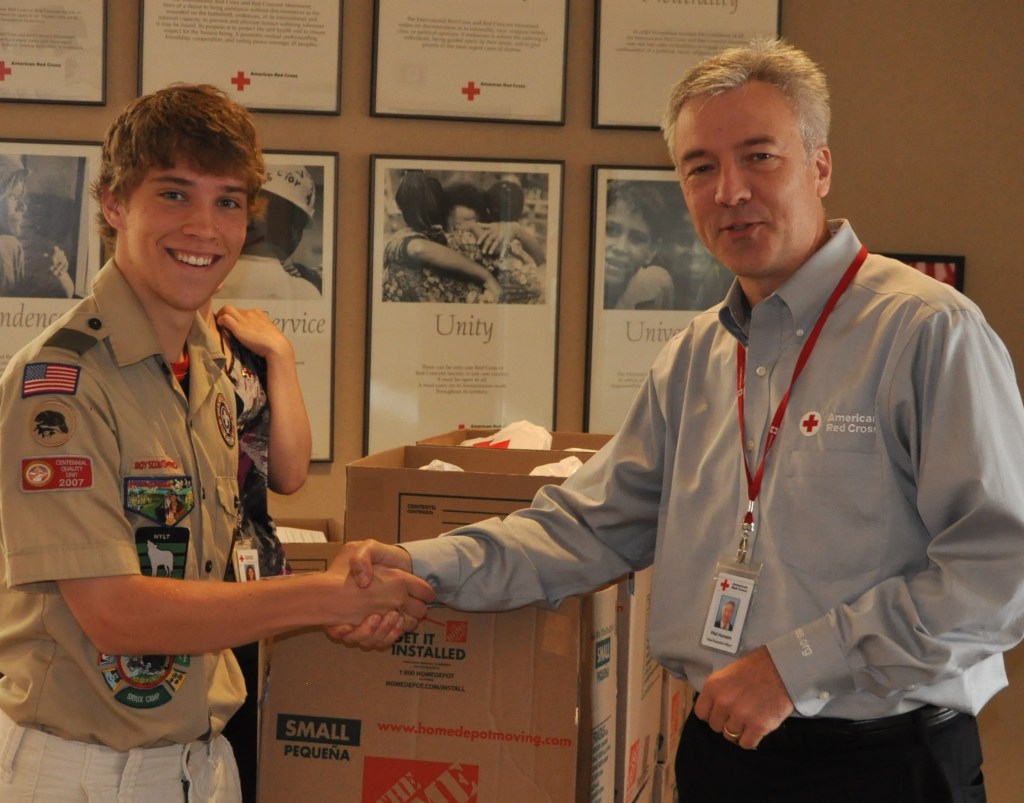 “It was great to meet you at the Twin Cities’ Red Cross office today. Thanks for your interest in my son, Paul’s, Eagle Scout project. It was a wonderful surprise and honor to meet Phil Hansen, an Eagle Scout himself. I know Paul was very impressed and honored by Mr. Hanson’s enthusiastic reaction to his project. And I am sure Paul will remember this day for the rest of his life. Most important, he and I are gratified to know these comfort kits will benefit the littlest and most vulnerable victims of disasters.”
