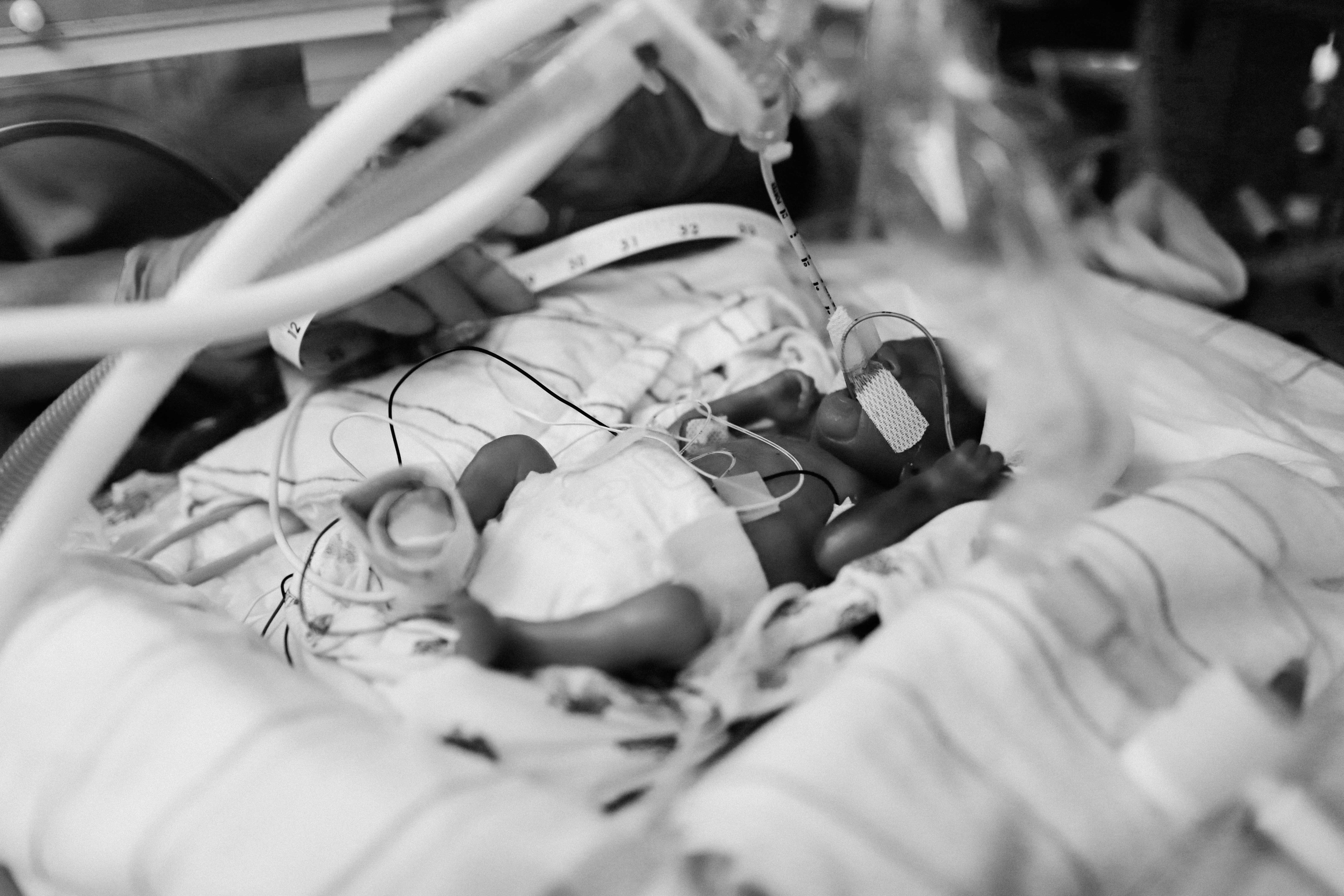 Addi was immediately intubated because her lungs were not strong enough to breathe on her own. Her left lungs began leaking air into her chest cavity, so a chest tube was inserted in her small chest to release air building up. “Her skin was thin and transparent,” Naumann says. Addi needed two blood transfusions to help her survive.